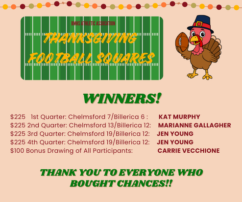 CONGRATULATIONS TO THE WINNERS OF THE THANKSGIVING GAME FOOTBALL SQUARES!!